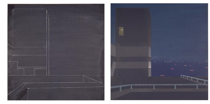 Untitled Cityscape (1997), acrylic on cotton duck, 100cm x 100cm
